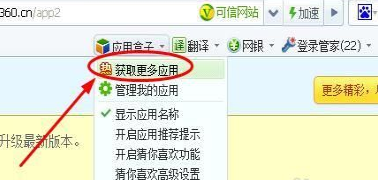 2、rang工具栏搜索应用盒子,打开它的下拉列表,看到有一个【获取更多应用】的选项,点击它