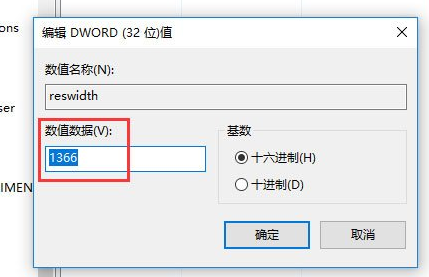 3、打开VEDIO之后,在右侧双击打开reshight(屏幕高度)改成768,双击打开reswidth(屏幕宽度)1366,当然我们可以通过需要修改的分辨率自定义进行修改。