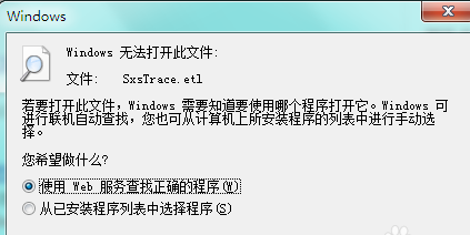 9、双击SxsTrace.etl文件需要有专门的程序与之关联之后,才能查看的。
