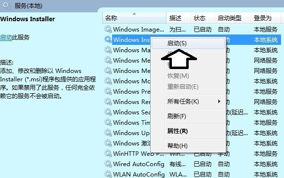 13、找到Windows Installer服务,右键启动即可。