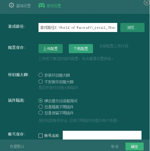 5、如果在上一步点了取消,可在设置里手动选择“安装怀旧服大脚”