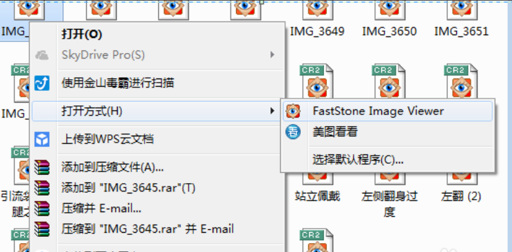 3、找到需要打开的CR2文件,右键 【打开方式】选择FastStone Image Viewer,就可以快速浏览了,