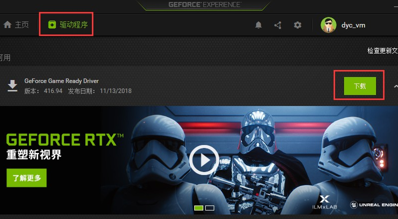 1、以英伟达显卡为例,打开GeForceExperience检测最新驱动