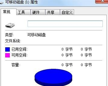 2、打开U盘,查看U盘的属性,这时发现所有数据都为零,如下图