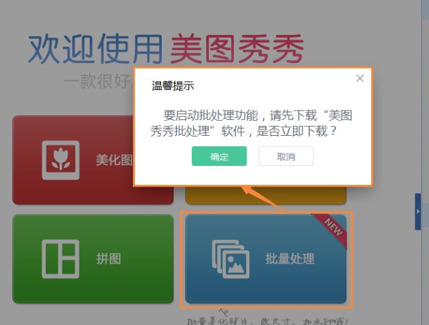 1、下载安装美图秀秀至电脑,打开后点击界面右下角“批处理”即可下载图片批处理工具。