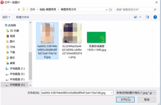 1、打开美图秀秀软件,点击右上角“打开”,在弹出的窗口中选择需要抠图的图片。