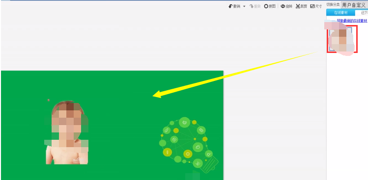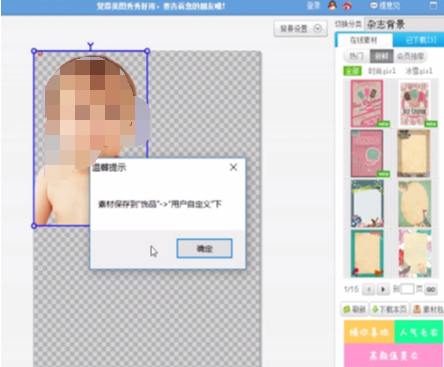 4、打开第二张图片,点击选择“饰品”,点击选择“用户自定义”,将之前保存的前景图拖入图片中,点击进行保存即可。