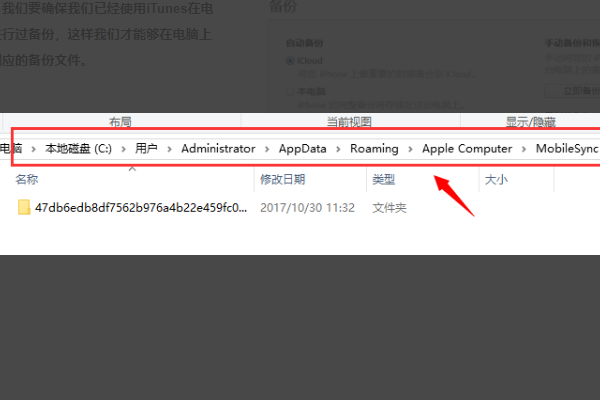 2、然后根据备份路径进行查询,C:\Users\用户名\AppData\Roaming\Apple Computer\MobileSync\Backup。
