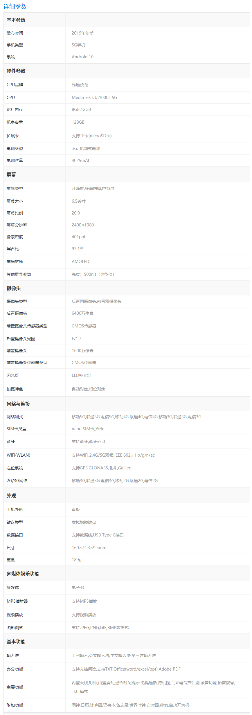 CPU:MediaTek天玑1000L 5G