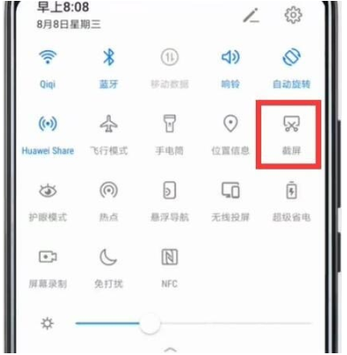 1.下拉屏幕上方状态栏,在快捷菜单栏里面有【截屏】开关,点击即可截图。