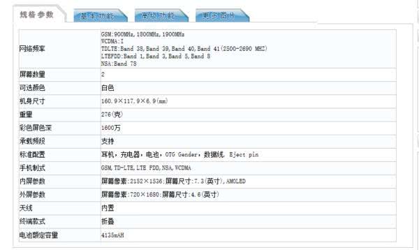前置摄像头:1000万像素内屏前置镜头+800万像素内屏前置镜头+1000万像素外屏前置镜头