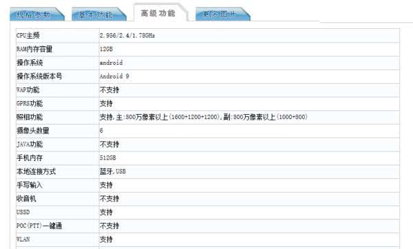 3.核心配置上, 三星W20 5G疑似搭载了高通骁龙855 Plus旗舰平台(网站显示CPU主频为2.96GHz)