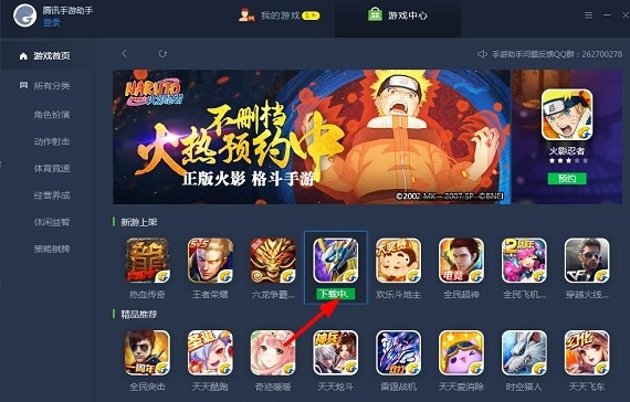 1、下载安装好腾讯手游助手之后,进入游戏中心;