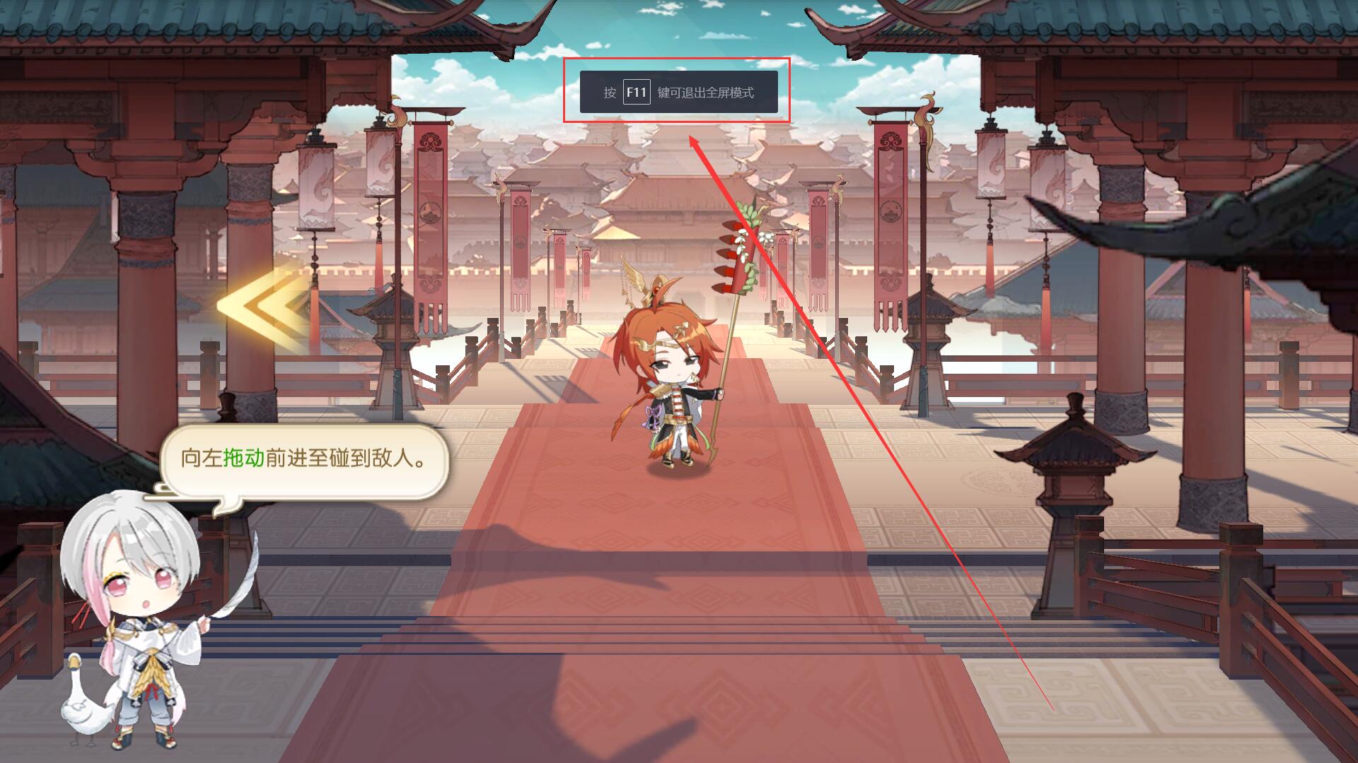 1、我们进入全屏的时候,会有提示按下【F11】即可退出全屏。