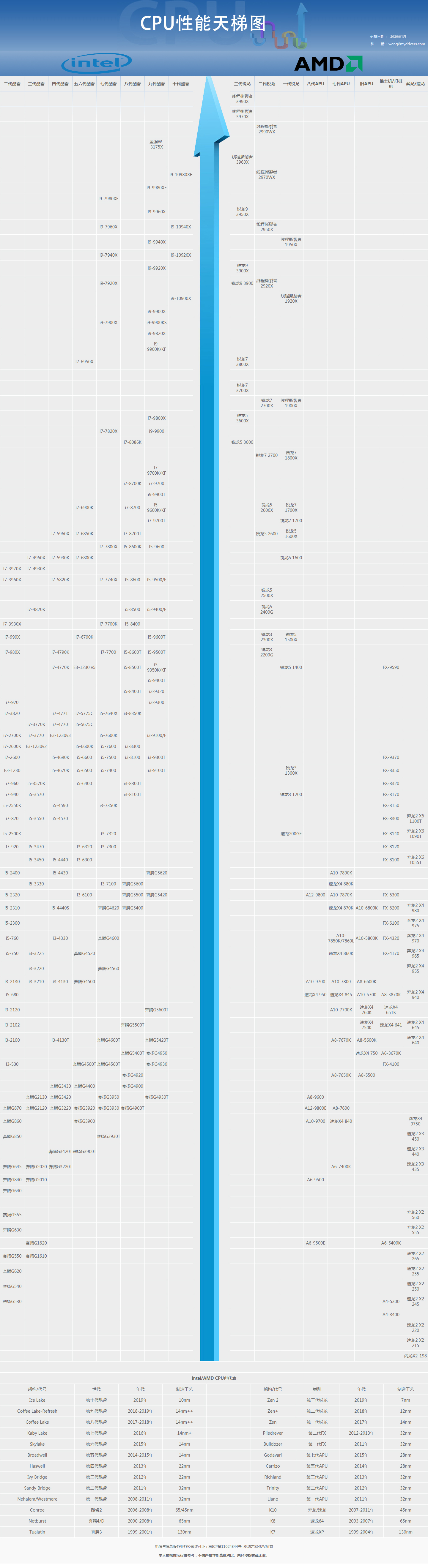 >>>CPU天梯图2020年1月<<<