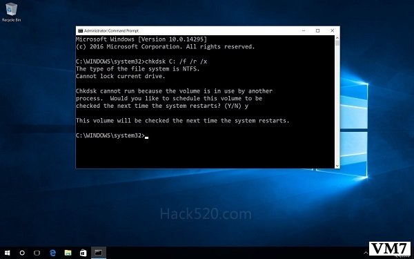 如果系统无法启动到桌面,可用安装盘启动到安装界面,点击左下角的“修复计算机”,之后就会进入WinRE恢复窗口,在此命令窗口中用系统命令CHKDSK检测修复磁盘问题。命令格式为“CHKDSK X: /F”,其中X为盘符。若要恢復修复的数据,则还需要添加一个/R参数。