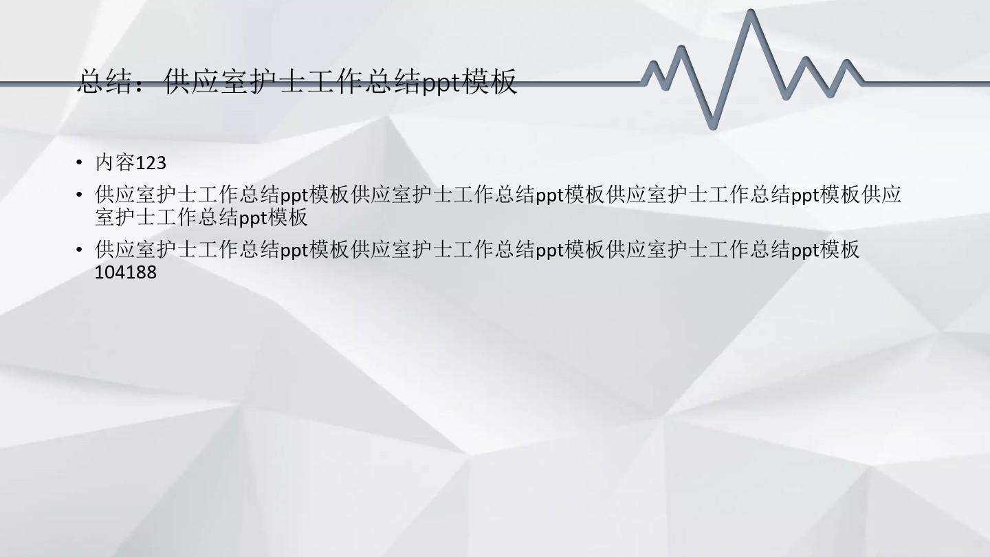 供应室护士工作总结ppt模板 作者:文档下载 • 时间:2020-02-25 • 文档 • 来源:免费文档 • 阅读 本文来自投稿,不代表微盟圈立场,如若转载,请注明出处:https://www.vm7.com/a/wendang/10431.html