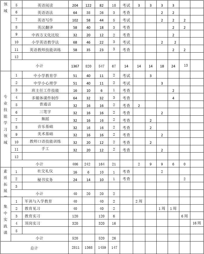 (5)掌握以小学及幼儿园英语为岗位群的基本能力和技能,拥有较强的小学、幼儿英语教学活动指导能力;