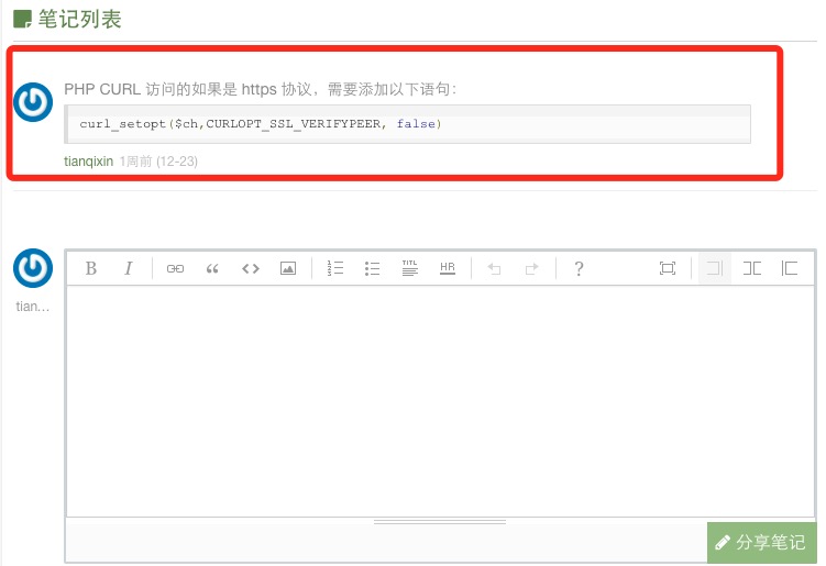 通过审核会给你邀请码注册,以后就能在我们平台上自己记录笔记了。笔记的内容要求简单明了,不能偏离对应的文章的内容,使用 一句简单的描述+一段简单的代码 的方式。如下图所示: