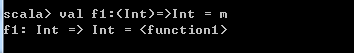 在如上的例子中,我们首先定义了一个方法 m,接着有定义了一个函数f。接着我们把函数名(函数值)当作最终表达式来用,由于f本身就是