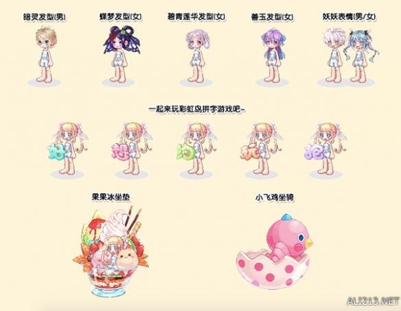 不仅更新了新职业、新地图、新怪物等内容,在本次《彩虹岛》暑期新版本中,商场也迎来了一次重大更新,多款适合夏日的装扮清凉上线,牢牢吸引了岛民们的目光。除了各种貌美的服饰之外,还有独具特色的拼字游戏套装、果果冰坐垫以及Q萌的小飞鸡坐骑也在同一时间上线,给你一个最缤纷多彩的夏天!