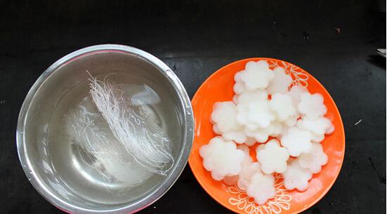 1、粉丝冷水浸泡,冬瓜去皮切片。