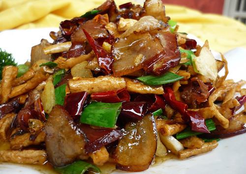 腊肉最烦琐也简直是最得本味的做法是,将腊肉切片,只用干辣椒快炒,炒到腊肉中肥肉的油脂将干辣椒润亮便可,不必加任何调料,由于腊肉自身已有盐,这么着就很甘旨了,配上白米饭,特别是用北方那种老式饭甑子蒸出来的颗颗清楚的香米饭,一气儿能吃好几碗,会完整忘了减肥甚么的事,只是沉溺到那种对食品最原始的需求中去,这真是十分完全攒劲的甘旨。也不需求独自放油热锅,只要把腊肉的肥肉切一些上去,切成丁,干锅里炼出油就能够炒肉,能够说是十分“自力更生”的。